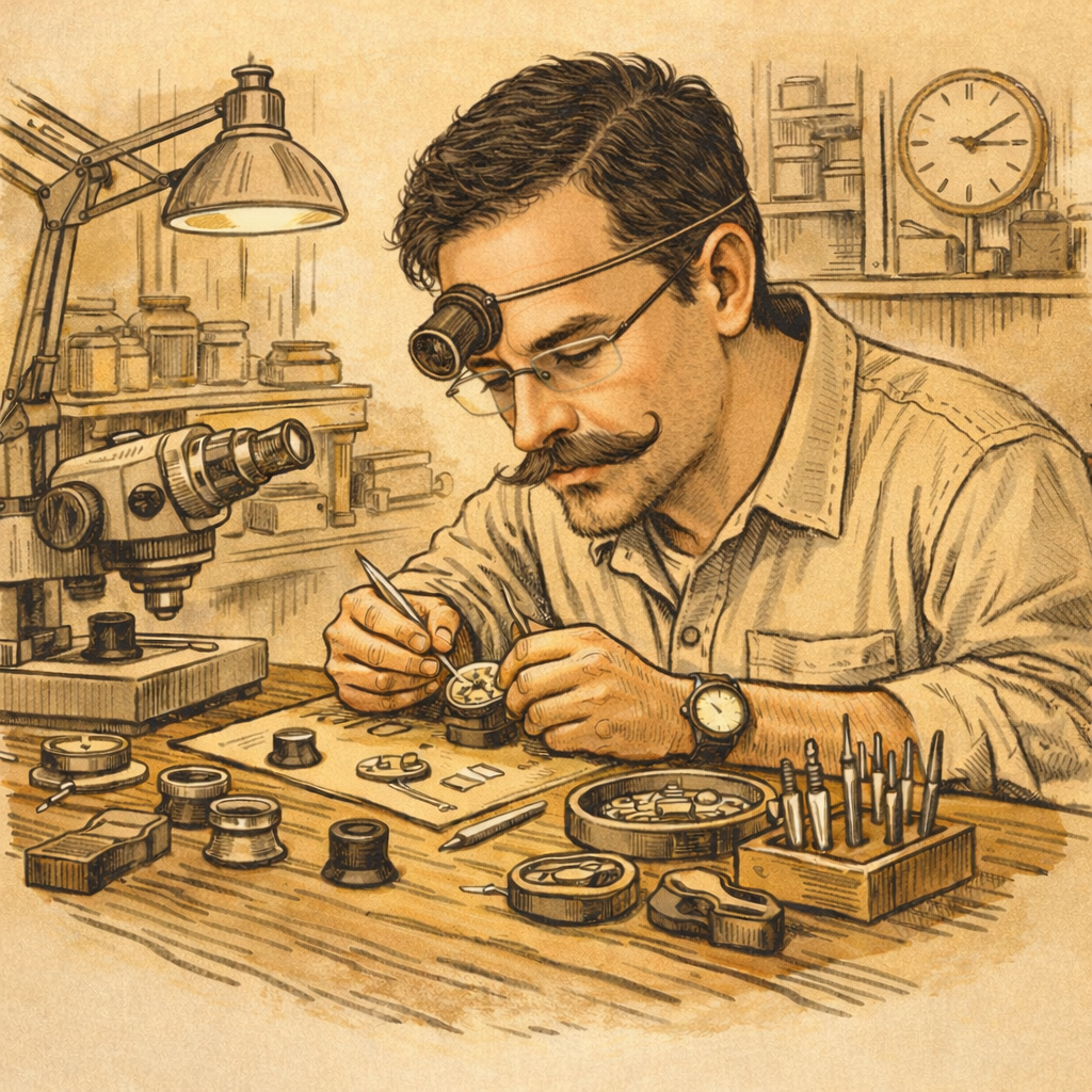 What followed was a deep and lasting interest in mechanical watches and the craft required to restore them properly. Over the years I’ve assembled a dedicated bench with traditional watchmaking tools, microscopes, and proper cleaning equipment, and developed the skills necessary to return vintage watches to reliable working condition.